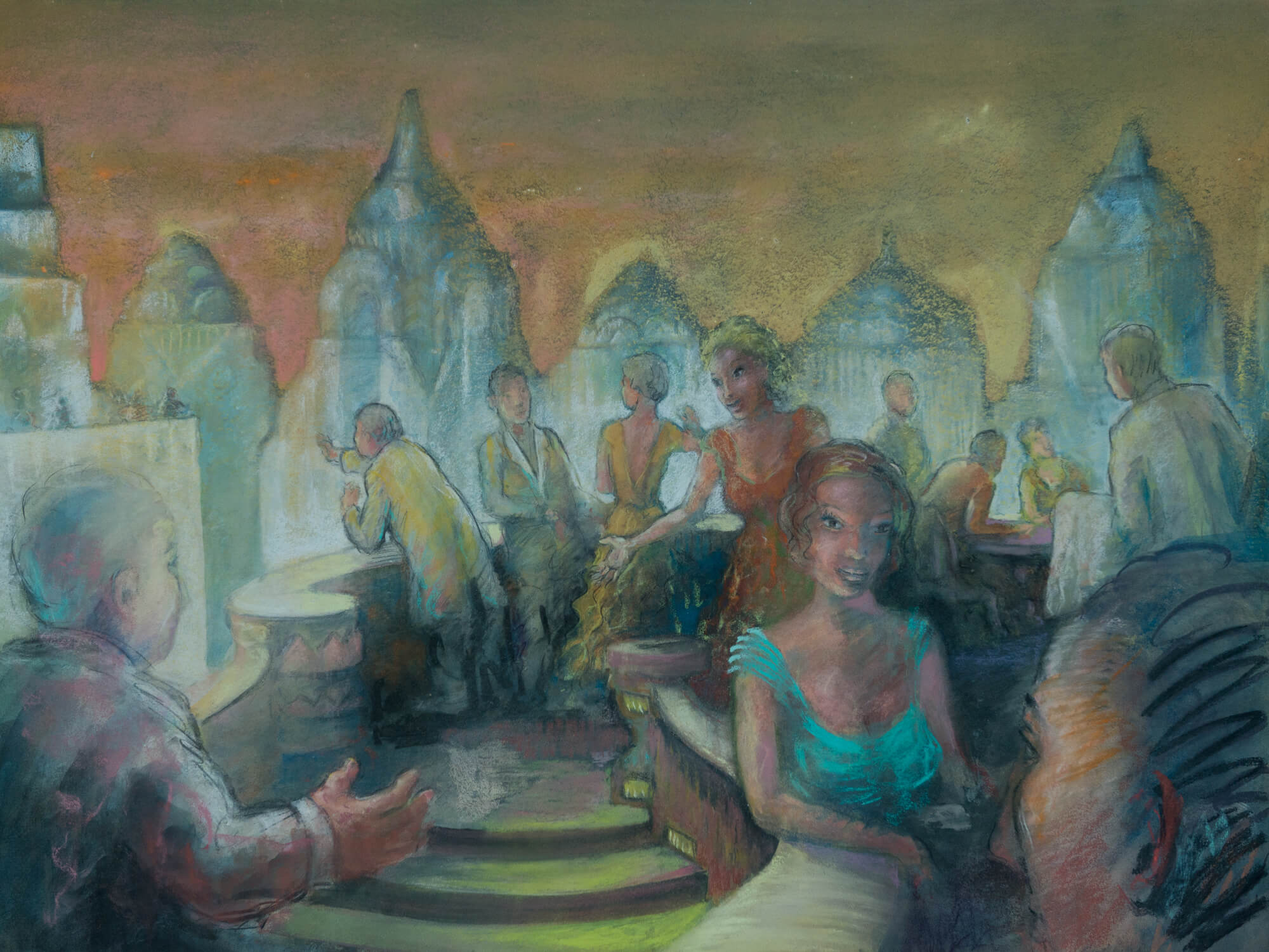 We used to visit them there when I was a child. The setting was magical…art deco buildings, rooftops, light, and glamorous people. The majority in this series is inspired by those memories.