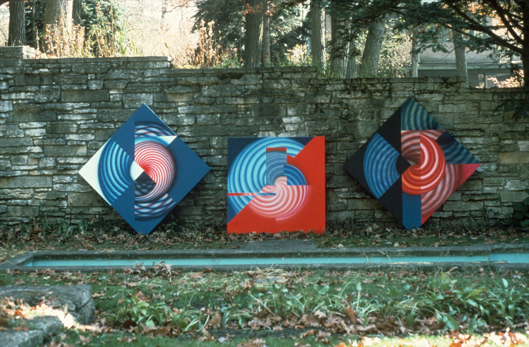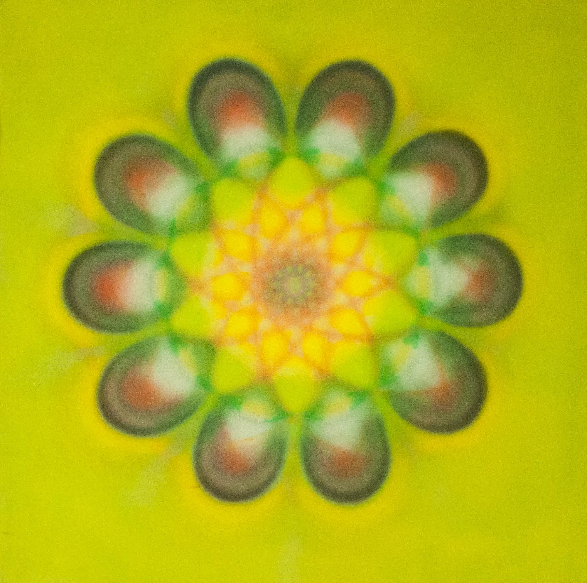 “The acrylic Mandala paintings started in the late 1960’s, inspired by a book on Tantric Art,“ Hall states. ”It was the time of the Viet Nam war, a period of fragmentation and disunity in America and people were looking inward. Many people became interested in Eastern thought and religion. The mandala is a tool for psychic integration —the reintegration of the self with deeper cosmic reality.