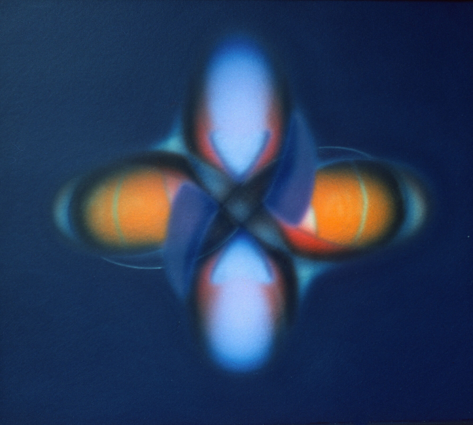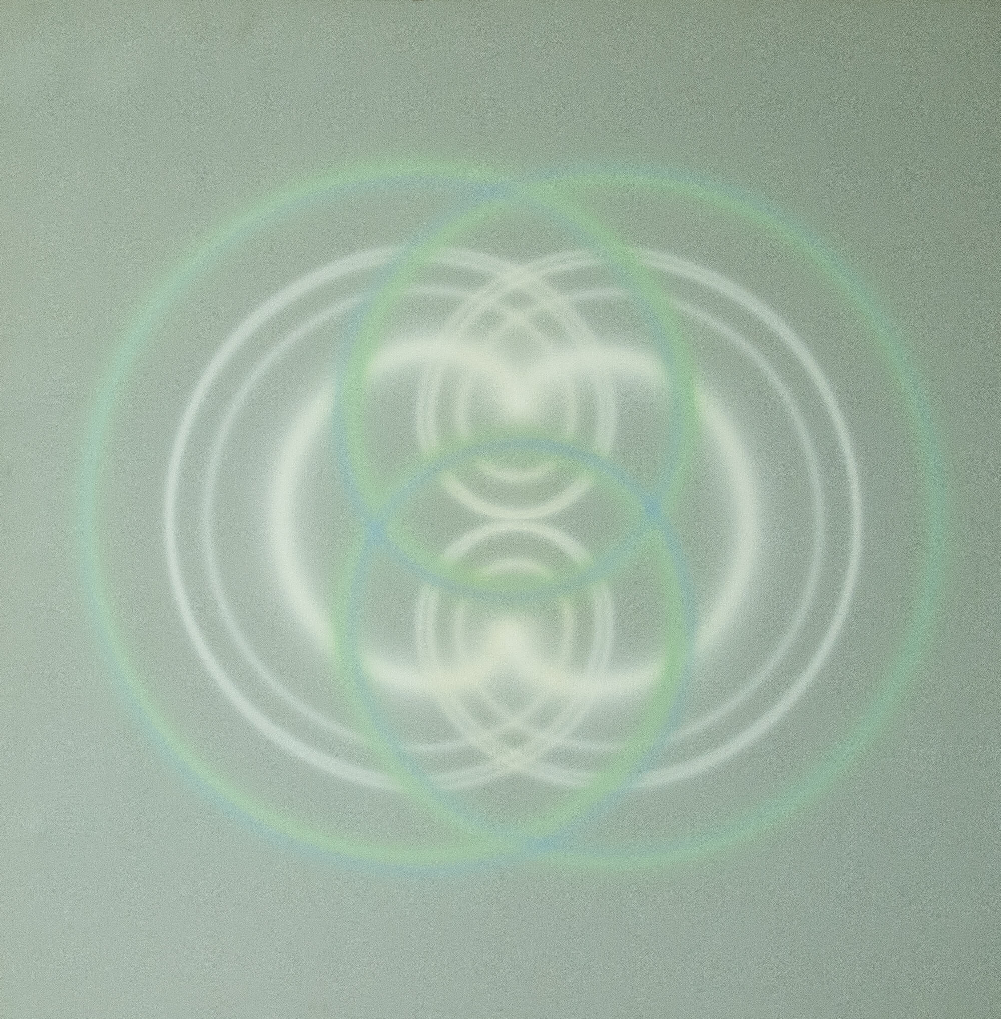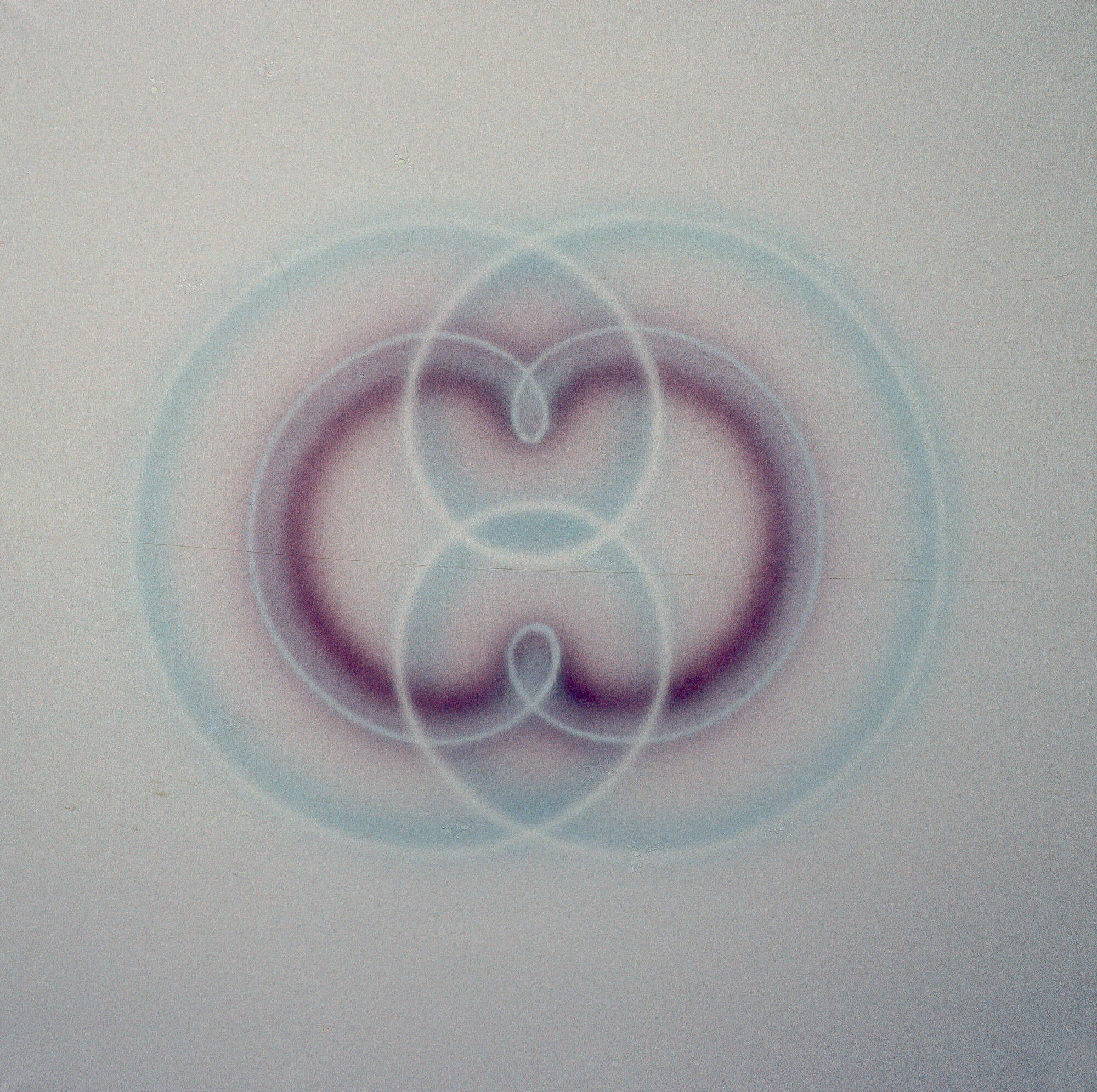 The paintings were made by a machine I designed and built originally in the basement of my grandmother’s home… an airbrush moving on a gear assembly, driven by an electric motor. I later rebuilt the machine in Los Angeles, CA.
