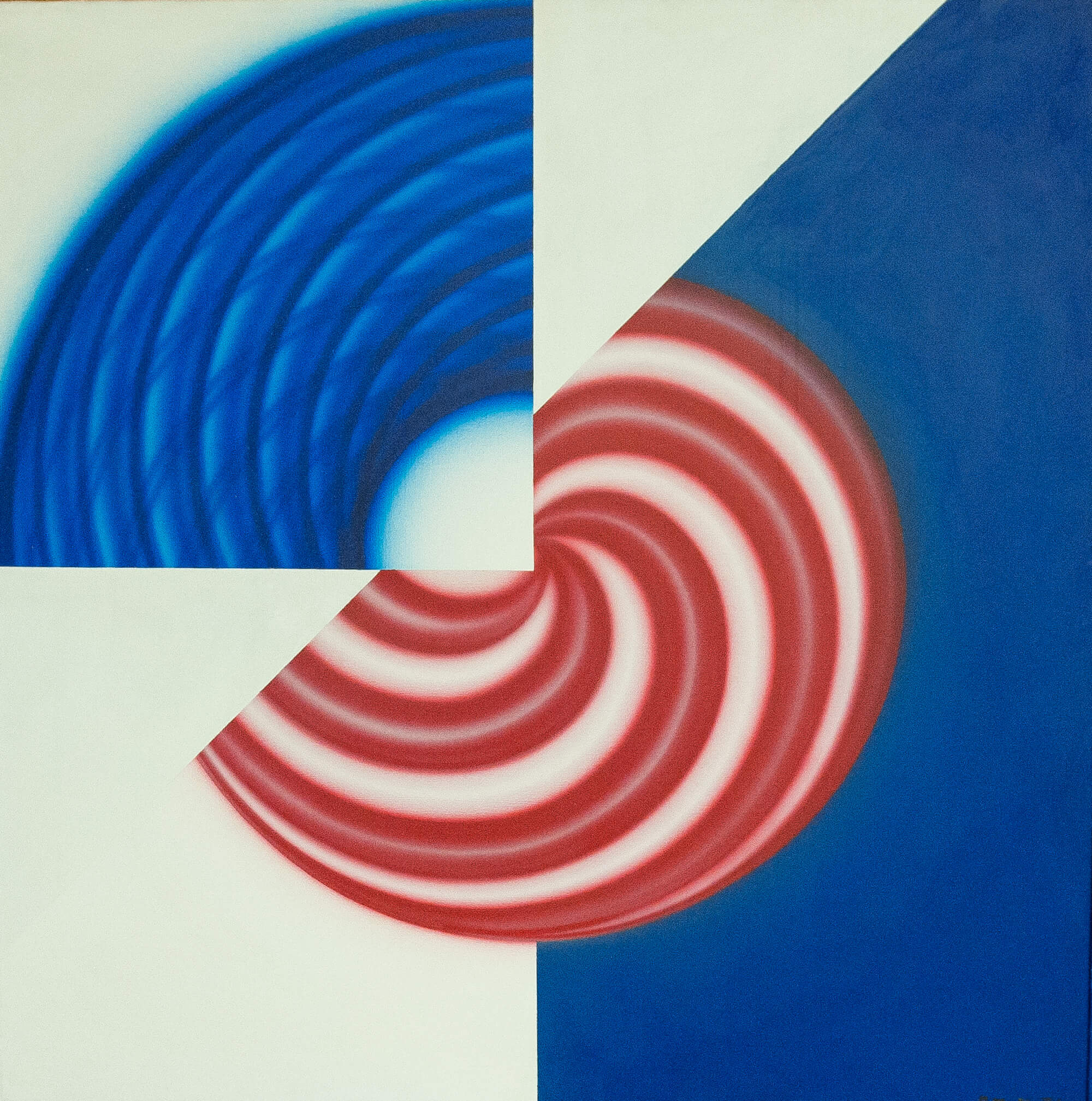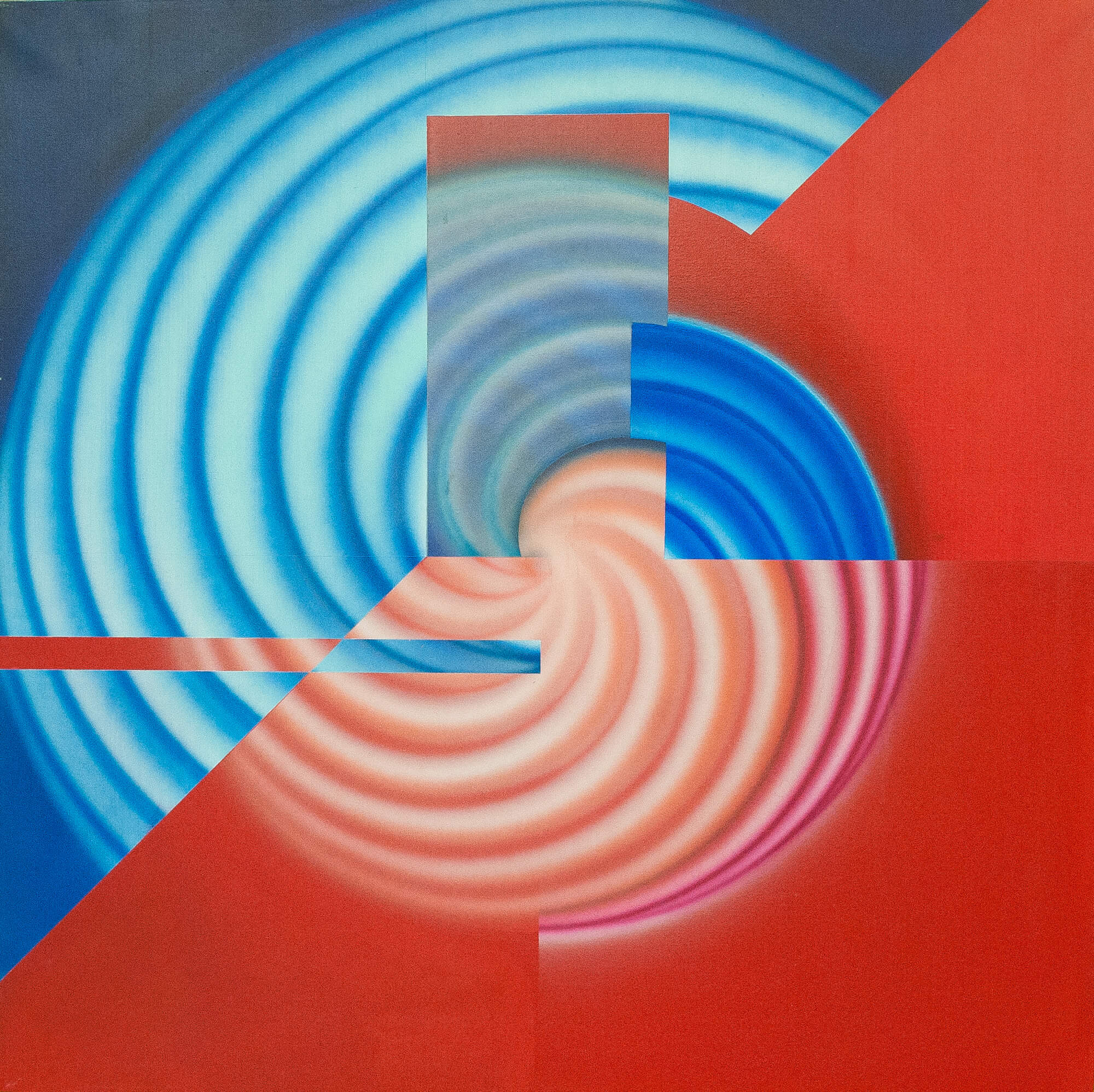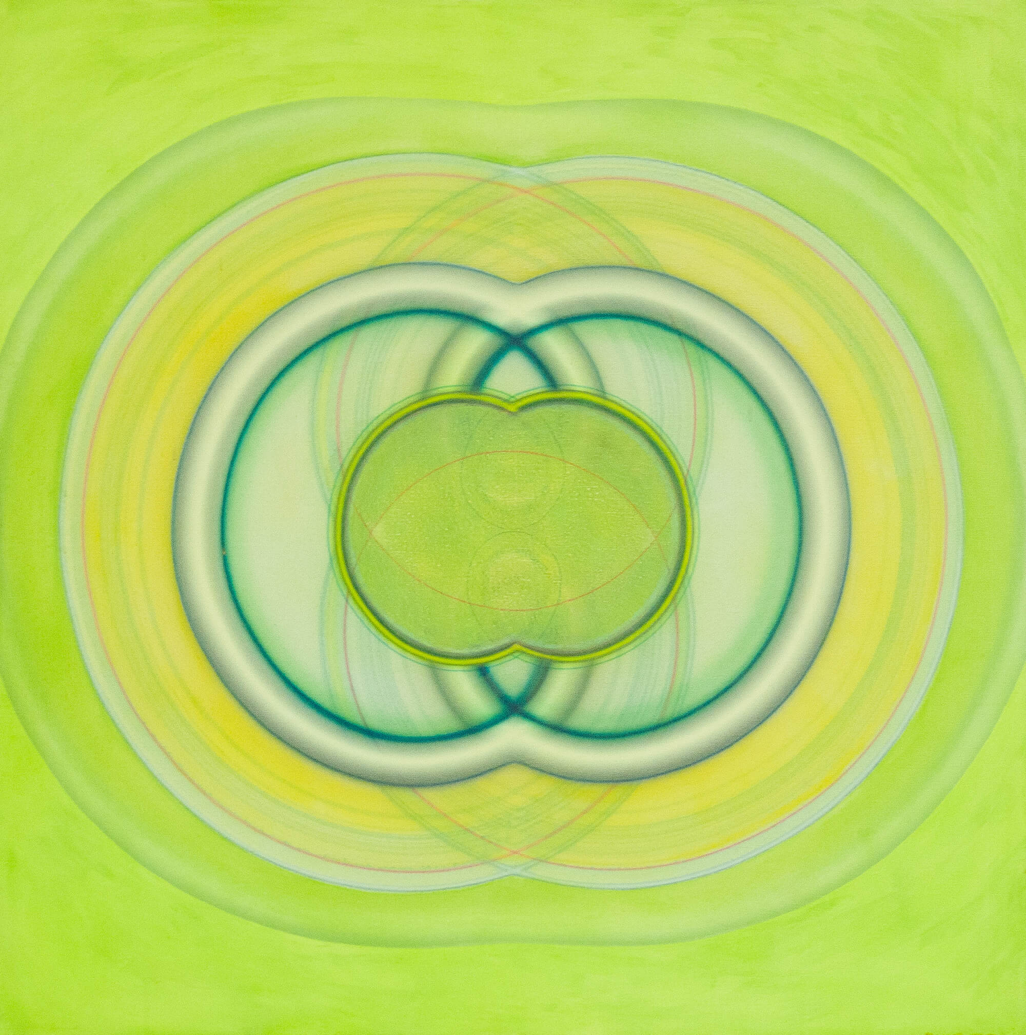 The paintings were made by a machine I designed and built originally in the basement of my grandmother’s home… an airbrush moving on a gear assembly, driven by an electric motor. I later rebuilt the machine in Los Angeles, CA.